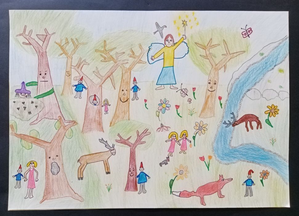 Megosztott I. helyezett Kazup Tilda 3. osztályos tanuló rajza, aki a Sárospataki Református Kollégium Általános Iskola tanulója: