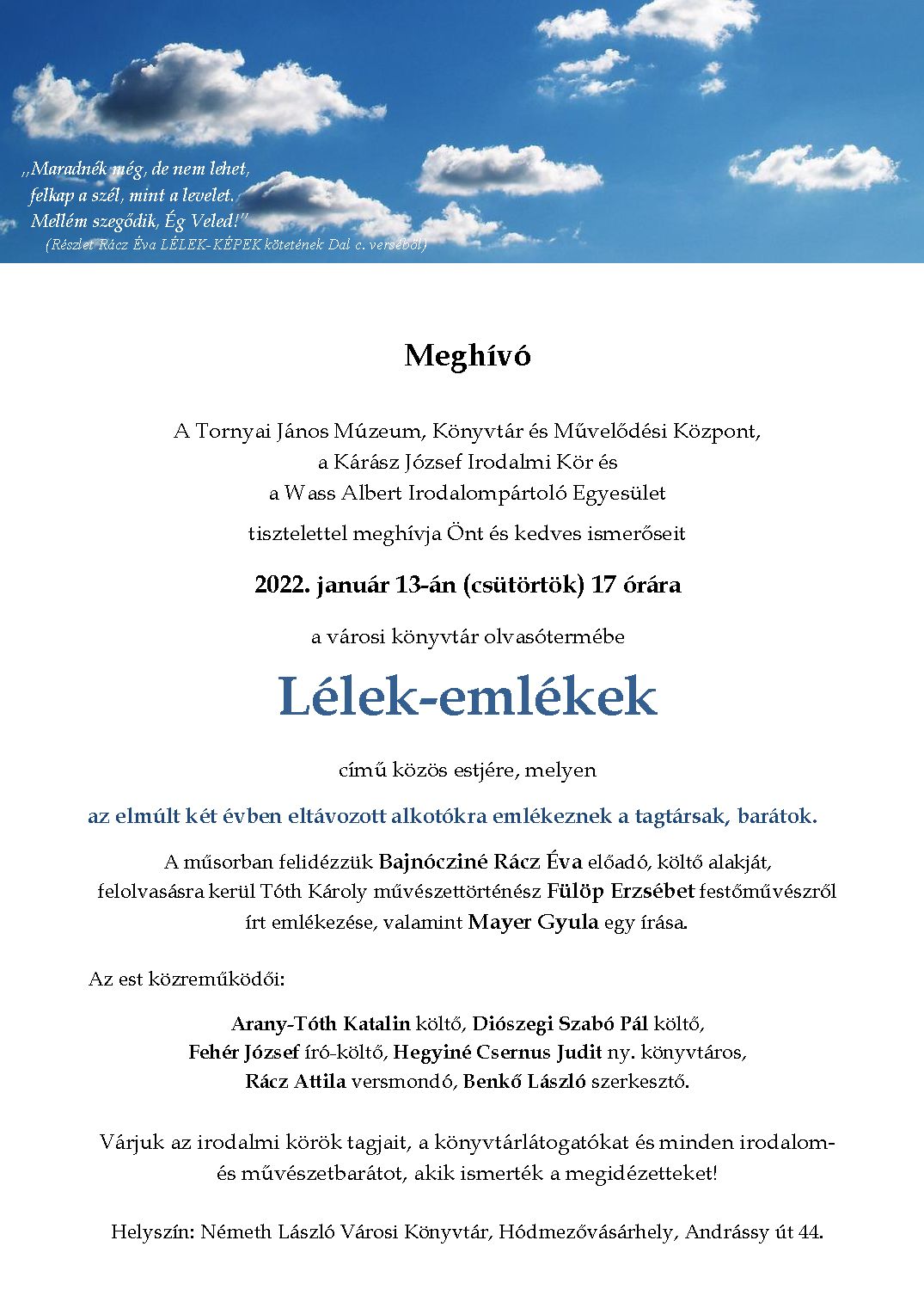 2. Családi kincseink: szüleink, nagyszüleink családi nyelvjárási folklórszövegeinek (mese, monda, régi családi történet, találós kérdések, mondókák, archaikus ima stb.) gyűjtése - jó minőségű (minimum HD) digitális hangfelvétellel és/vagy lejegyzett szövegekkel is lehetett pályázni.