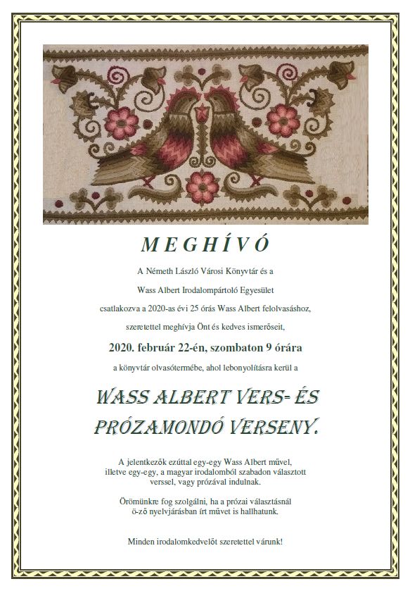 Február 22-én tartottuk a Körünk által meghirdetett Wass Albert vers- és prózamondó versenyt.